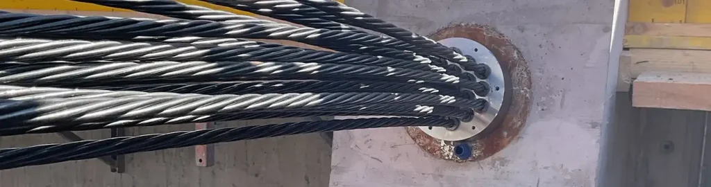 Die Flachspannglieder werden idealerweise mit den CMI-Verankerungen kombiniert. Damit kann die gleichmässige Vorspannung im Spannglied gewährleistet werden. Auf Anfrage können Flachspannglieder bis 0506 auch mit einer Fächerverankerung (CMF) kombiniert werden. Bei der CMF-Verankerung wird jede Litze mit der Monolitzenpresse einzeln vorgespannt.