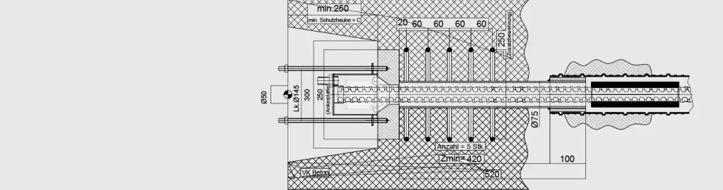 - Einbetonierte, nicht zugängliche Verankerungen (z.B. in Bodenplatte)