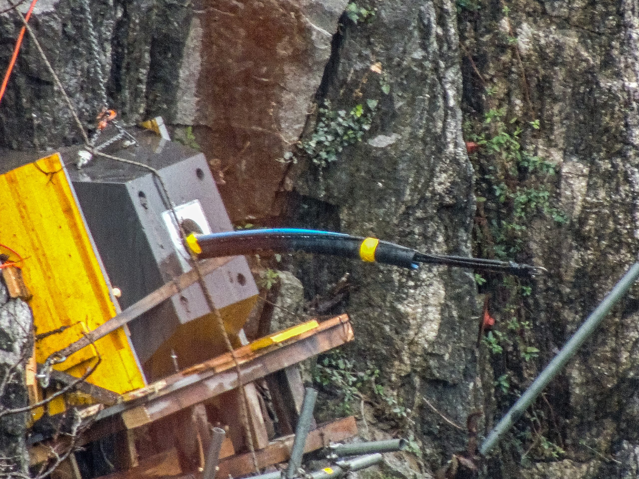 Das Bohren und Versetzen der Anker plus das Ausbilden der Auflager wurde an hängendem Seil ausgeführt. Unter Anleitung des Tessiner Monteurs der Stahlton AG wurden die Anker im Anschluss an den Einbau geprüft und abgespannt. Zur Überwachung des Felsens wurden zudem 10 Kraftmessdosen verbaut. Diese messen permanent die Kräfte, welche auf die gespannten Anker wirken und ermöglichen auf eine Kraftzunahme sowie -abnahme zeitnah reagieren zu können.