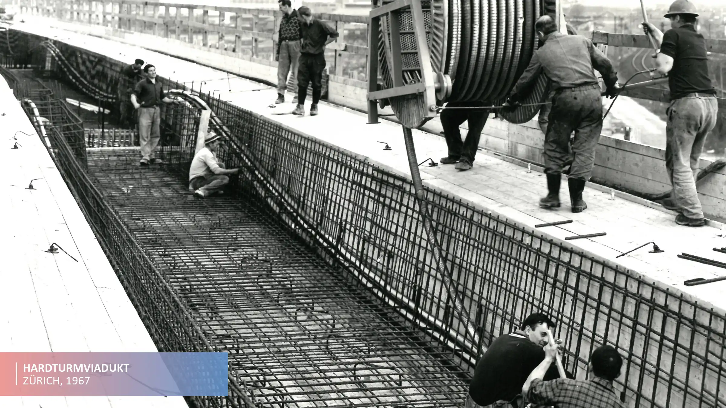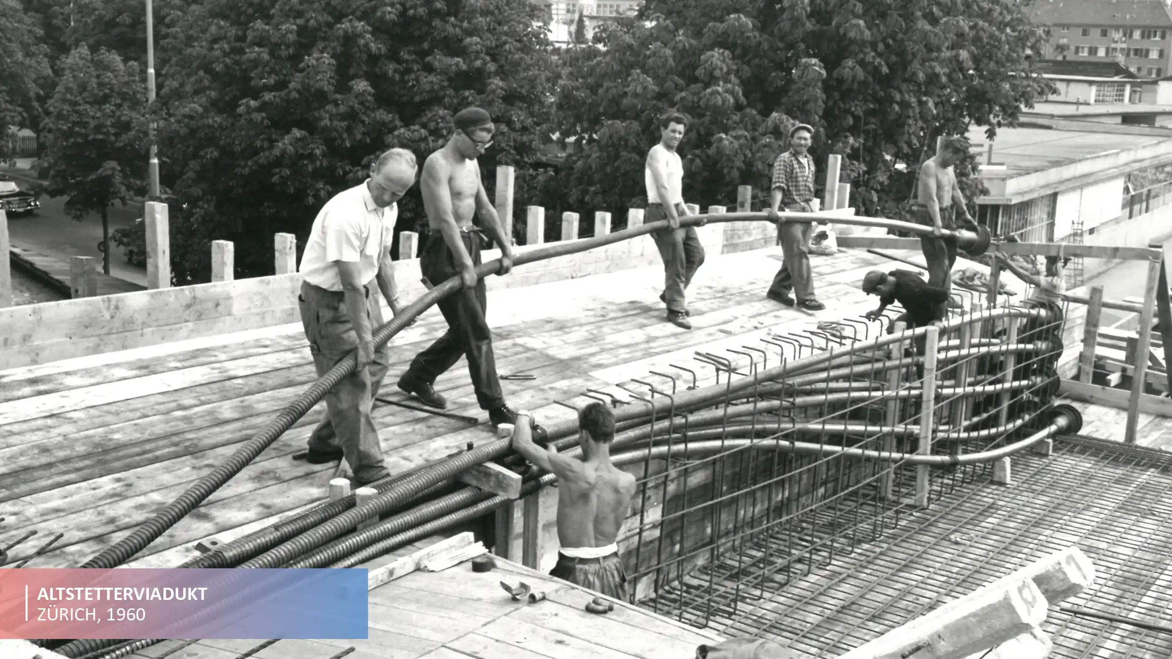 Die erste Brücke in der Schweiz wird nach diesem Spannbeton-Verfahren vorgespannt.